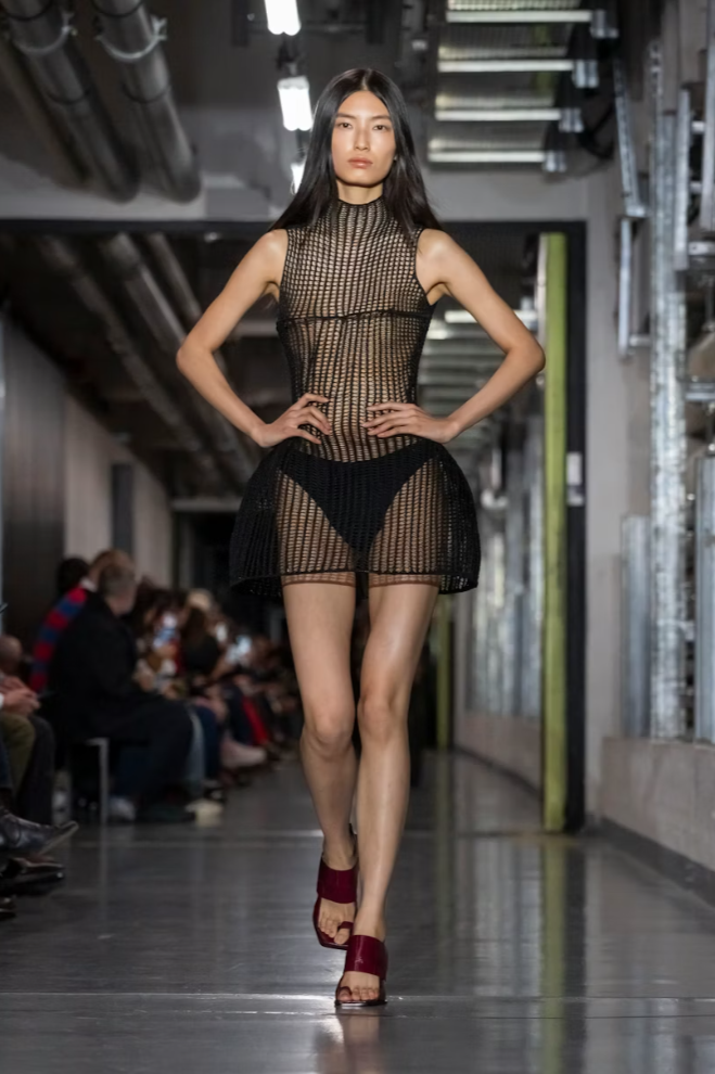 そのほかにも重量に逆らったようにプリーツのワンピーススカートが捲れて脚が露わになったルックや、黒のコルセットが網目状で透け感の高いルックなどJean Paul Gaultierのコードらしさを残しつつ新しい息吹を感じるショーであった。
