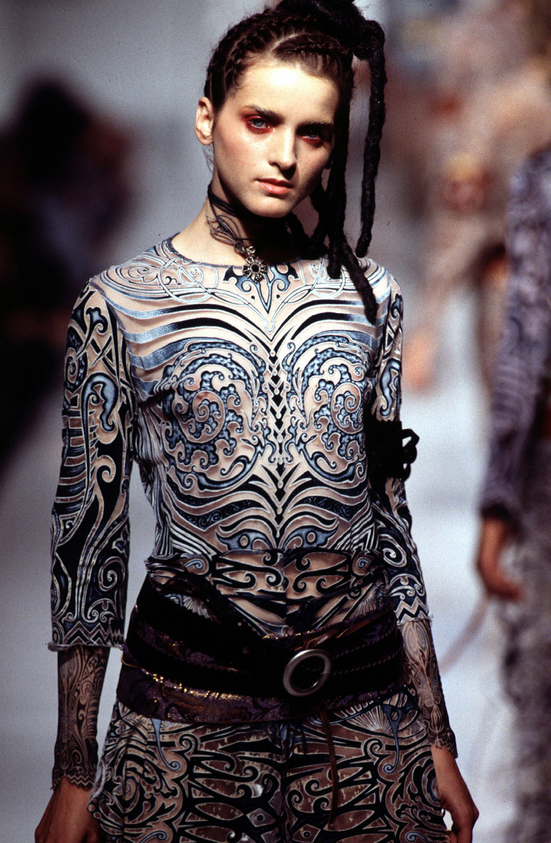 まるでタトゥーを入れたようにみえるチュールには、スタイリッシュの龍、王道のタトゥーらしいデザインから人体模型のような遊び心のあるルックも登場した。