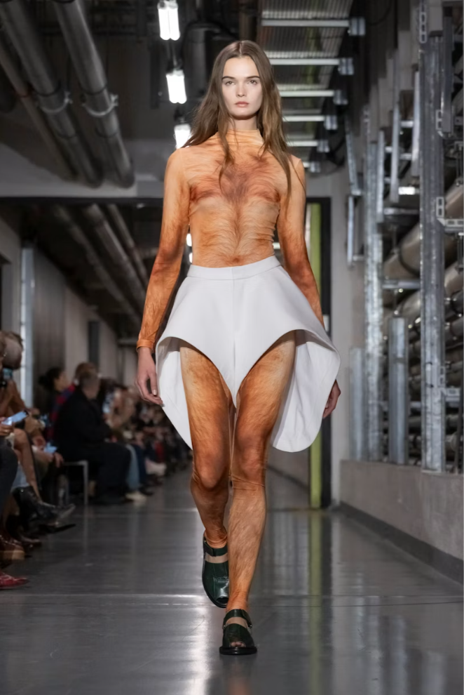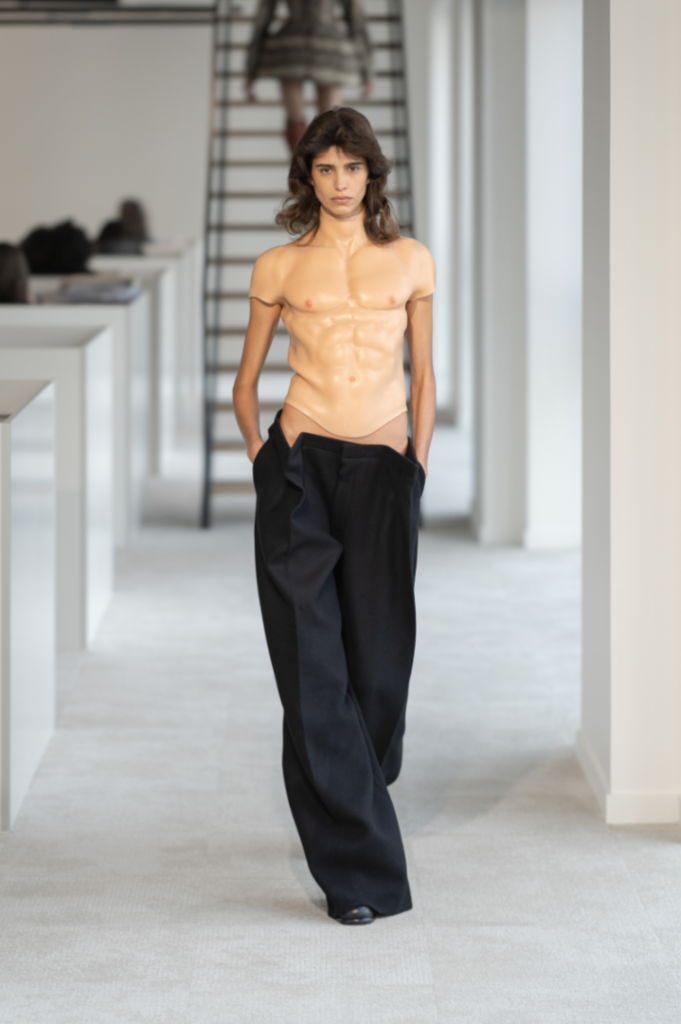 賛否両論を巻き起こしたのはまるで裸にみえるチュールだが、これまでのJean Paul Gaultierの物議を醸すファッションや、Duran Lantink自身のレーベルの2025秋冬コレクションで発表したシリコンバストを考えると想定の範囲内といえる。