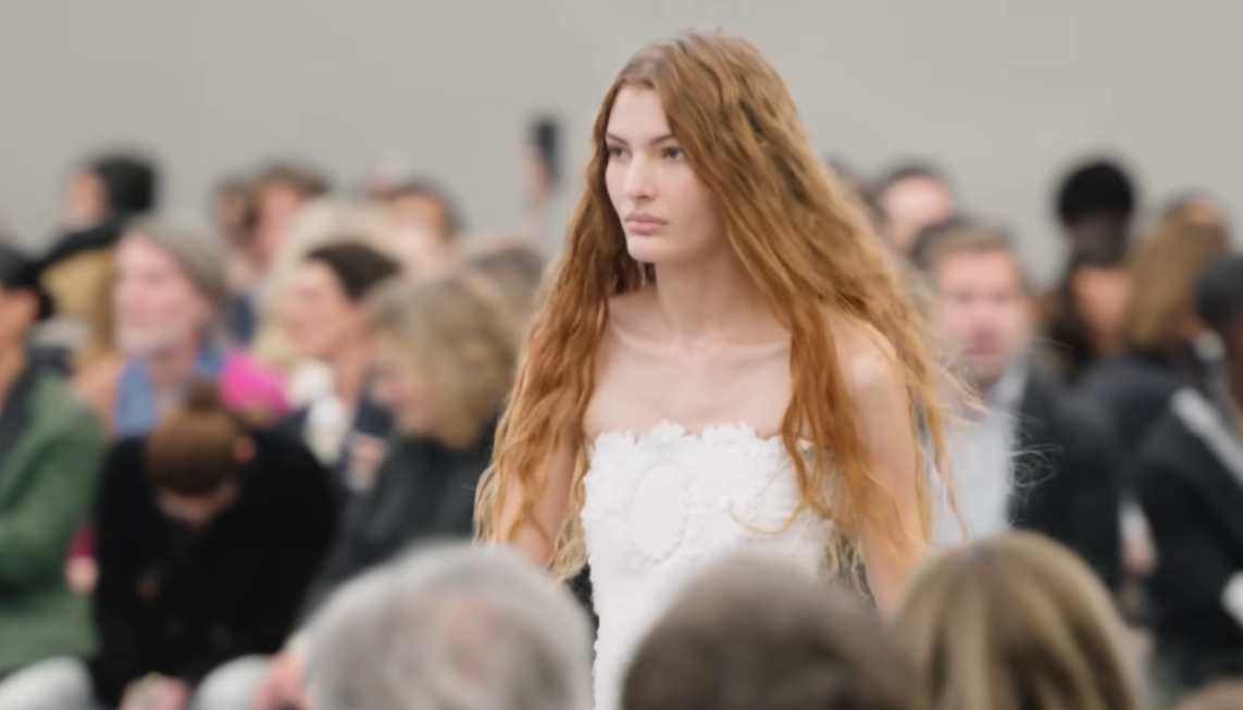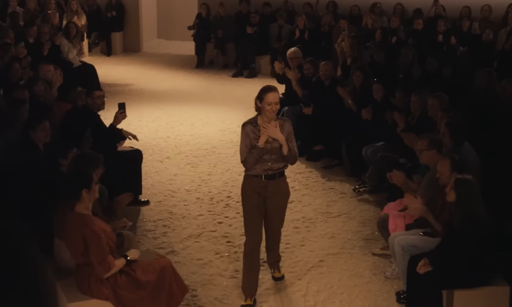 ファッションショーの会場にはカマルグ地方のビーチを思い描いたような貝殻が散りばめられた砂浜で埋め尽くされていた。
